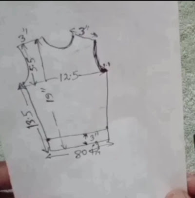 स्वेटर की पूरी लंबाई 19 इंच है। (जिसमें बॉर्डर की लंबाई 3 इंच है और उसके ऊपर की 16 इंच)। दोनों और कंधे की चौड़ाई 3-3 इंच है।पल्ले की चौड़ाई 12.5 इंच है। मुड्डे घटाने के बाद की लंबाई 5.5 इंच है। मुड्डे घटाने के पहले की लंबाई 13.5 इंच है।