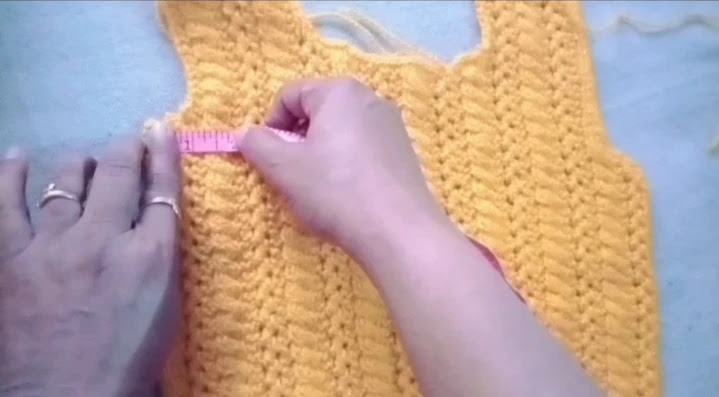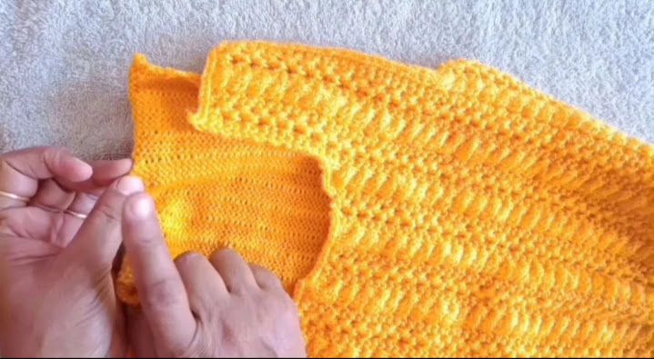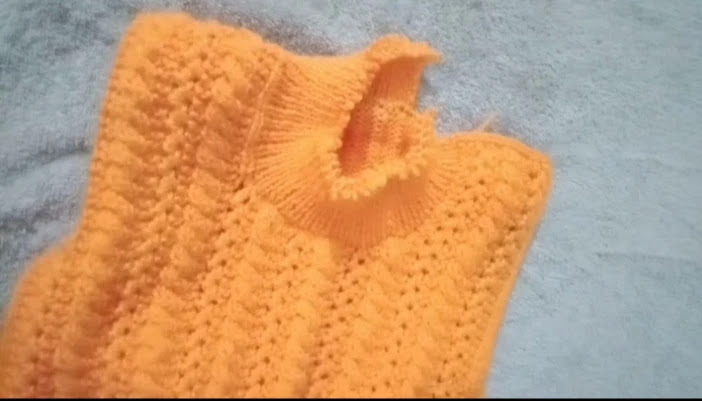 गला घटाने के बाद दोनों ओर ऊपर 4 इंच बुनते हैं। इस तरह से अगला पल्ला पूरा तैयार है।