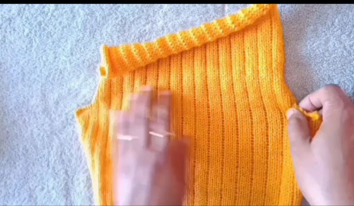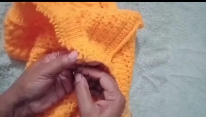 सारे स्वेटर और उसके बॉर्डर को सिलने के बाद दोनों ओर के बाजू के निचले हिस्से को पहले सिल लेंगे, फिर गोलाई में दोनों और के मुड्डे से उसे जोड़ देंगे।