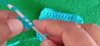 फिर से फंदे लेंगे और क्रोशिए पर बचे दो फंदों को उसके ऊपर से गिरा लेंगे इस तरह से सिर्फ एक फंदे बचेंगे इस तरह से डबल क्रोशिया (DC) बनाएंगे।
