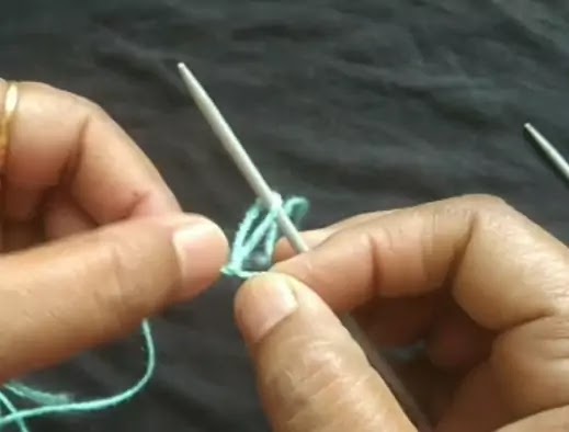 2- एक सलाई की मदद से एक फंदे को बनाने के लिए पीछे के yarn को आगे की yarn के नीचे से खींचेंगे।